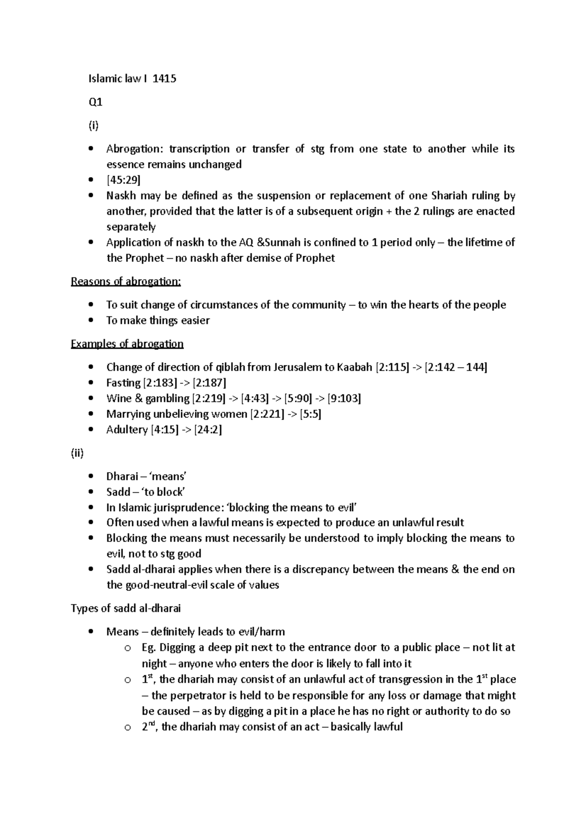Islamic Law 1 14 15 Answer Past Year Islamic Law I 1415 Q I Abrogation Transcription Or Studocu